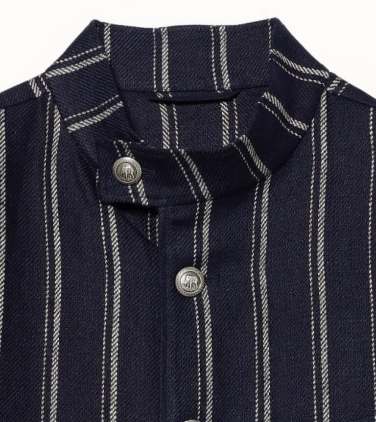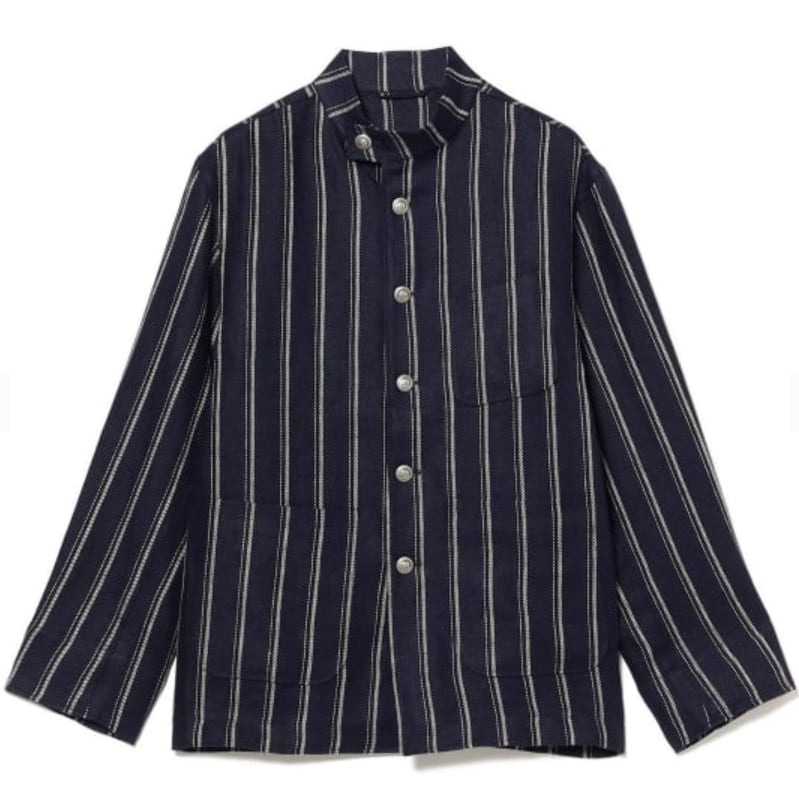 メンズ リネン ストライプ スタンドカラー ジャケット